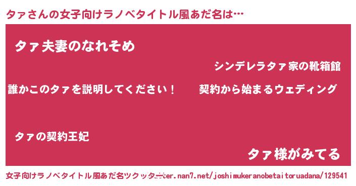 | 男性向けラノベタイトル風あだ名 | 『タァアートオンライン』『緋弾のタァ』 |