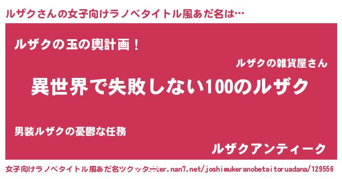 | ヒーロー風カッコイイあだ名 | 『ネオルザク』『究極戦士ルザク』 |