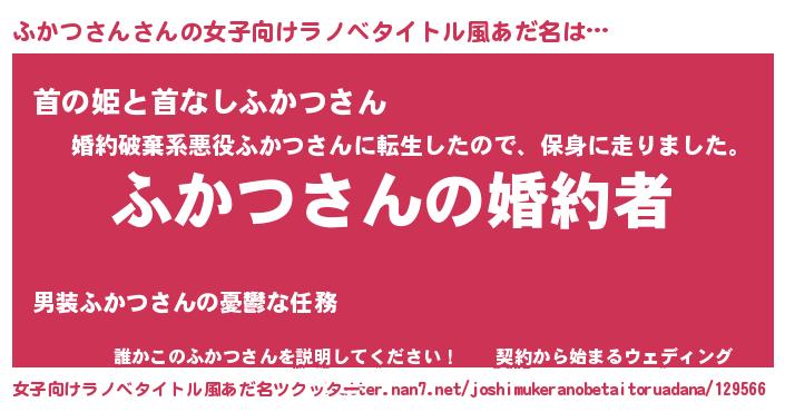 | 意味不明あだ名 | 『ふかつさんフォーエバー』 |