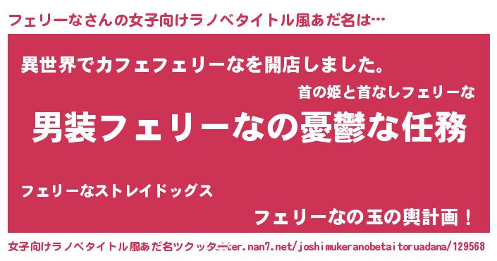 | 胡散臭い通販商品みたいなあだ名 | 『来世でも幸せになれる水素水…その名も「フェリーな」』 |