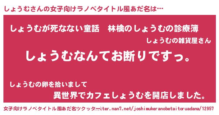 | 男性向けラノベタイトル風あだ名 | 『魔法科高校のしょうむ』 |
