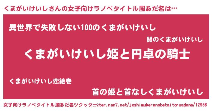 | 男性向けラノベタイトル風あだ名 | 『くまがいけいしの憂鬱』 |