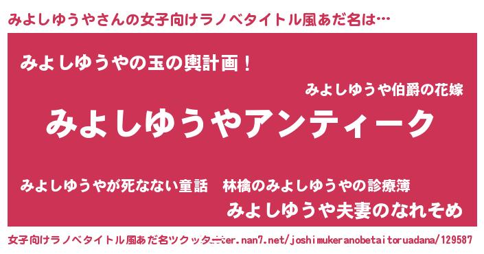 | 男性向けラノベタイトル風あだ名 | 『魔法科高校のみよしゆうや』 |