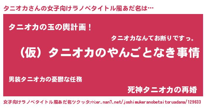 | 男性向けラノベタイトル風あだ名 | 『タニオカの憂鬱』 |