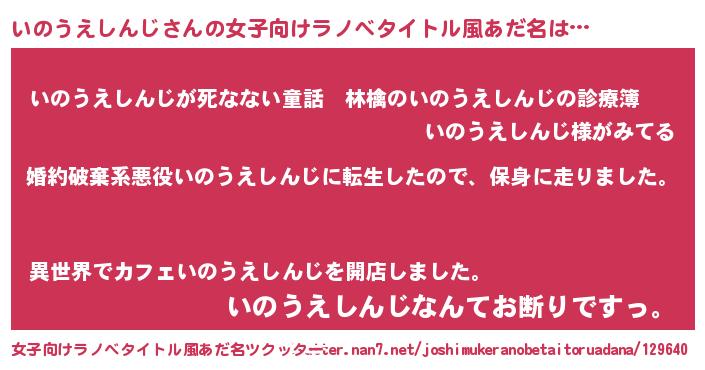| ヒーロー風カッコイイあだ名 | 『仮面イノダー』『暗黒騎士イノ』 |