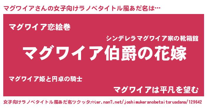 | ヘコむあだ名 | 『なまこ酢』『マグっ子』『マグもー』 |