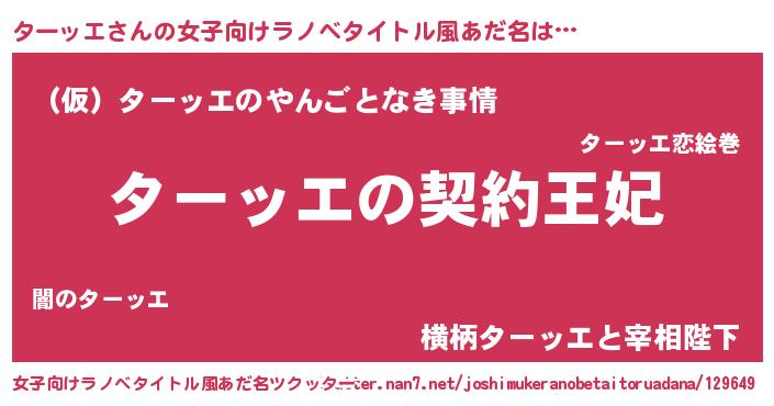 | 男性向けラノベタイトル風あだ名 | 『誰もが恐れるあのターッエが、ぼくの専属メイドになるようです。』 |