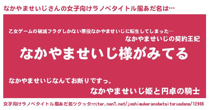 | 伝説のあだ名 | 『覚醒した遊び人なかやませいじ』 |