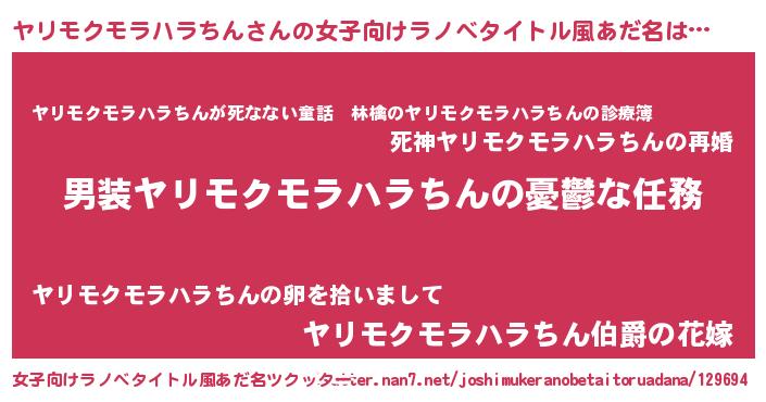 | 胡散臭い通販商品みたいなあだ名 | 『あなたにだけ特別に提供する限定10本のレアな日本酒…その名も「ヤリモクモラハラちん」』 |
