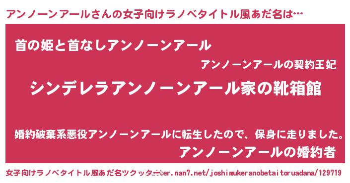 | 男性向けラノベタイトル風あだ名 | 『緋弾のアンノーンアール』 |
