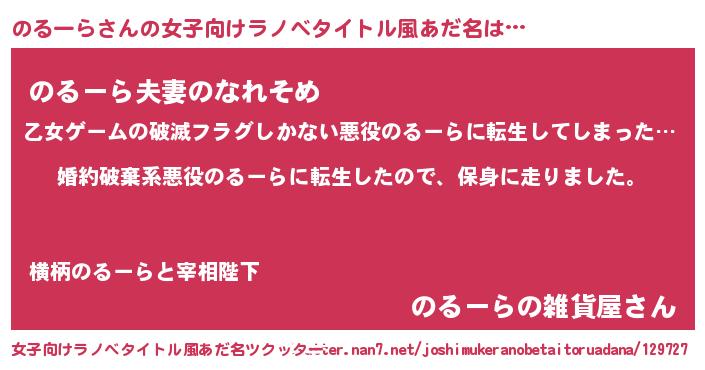 | 男性向けラノベタイトル風あだ名 | 『ノルーラスレイヤー』 |