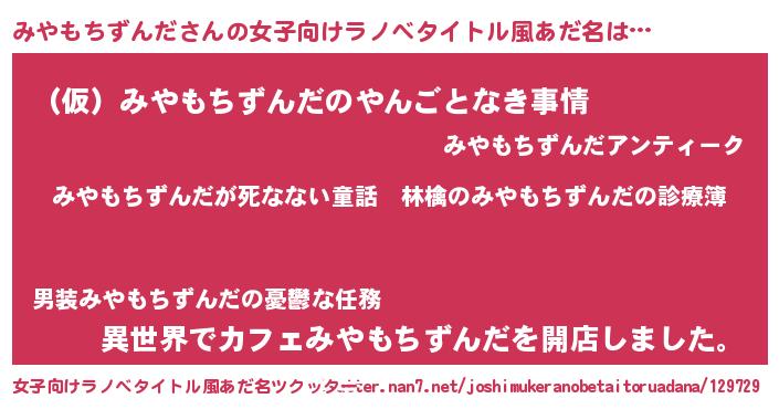 | 男性向けラノベタイトル風あだ名 | 『魔弾の王とみやもちずんだ』 |