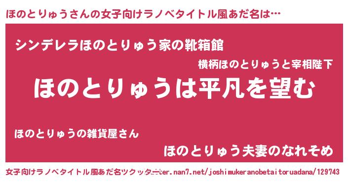 | 男性向けラノベタイトル風あだ名 | 『ダンジョンにほのとりゅうを求めるのは間違っているだろうか』 |