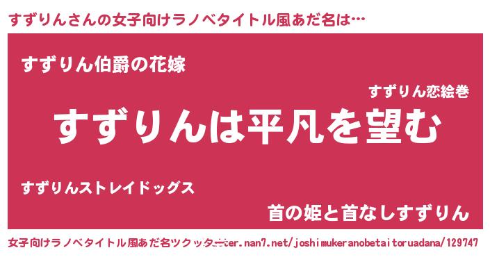 | 胡散臭い通販商品みたいなあだ名 | 『信頼と実績のサプリメント…その名も「すずりん」』 |