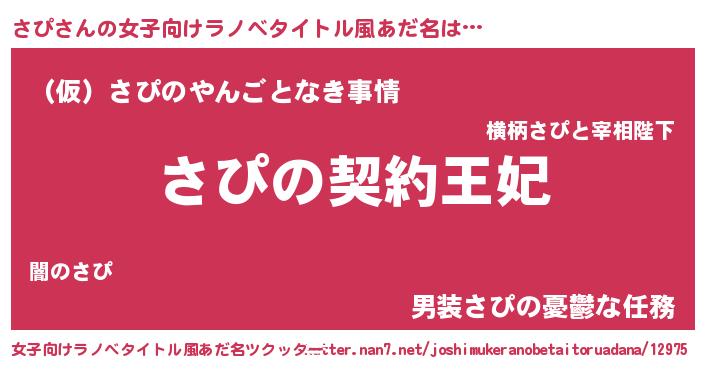 | ヘコむあだ名 | 『さぴ(笑)』『さぴにゅー』『さぴを』 |