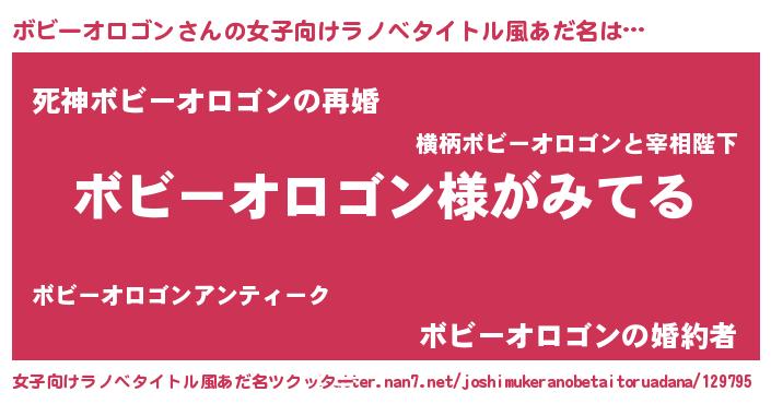 | 男性向けラノベタイトル風あだ名 | 『ボビーオロゴンの嫁は女の子じゃないと思った?』 |
