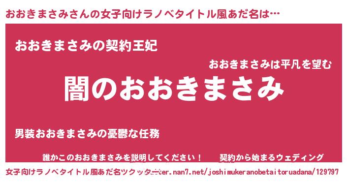 | 男性向けラノベタイトル風あだ名 | 『Re:おおきまさみから始める異世界生活』 |