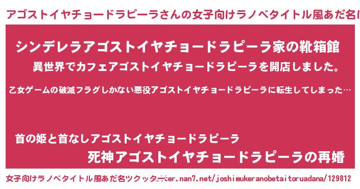 | 意味不明あだ名 | 『住所不定無職アゴストイヤチョードラピーラ(7歳)』 |