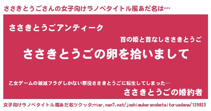 | 胡散臭い通販商品みたいなあだ名 | 『伝統あるサプリメント…その名も「ささきとうご」』 |