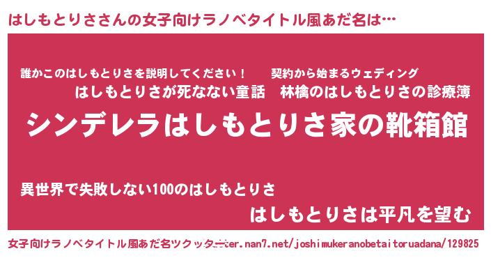 | 胡散臭い通販商品みたいなあだ名 | 『必ず成功するブレスレット…その名も「はしもとりさ」』 |