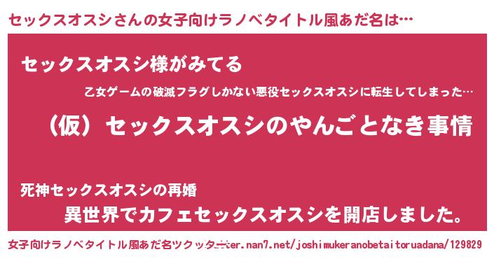 | 胡散臭い通販商品みたいなあだ名 | 『必ず成功するブレスレット…その名も「セックスオスシ」』 |