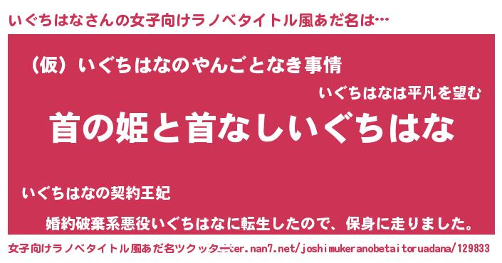 | 胡散臭い通販商品みたいなあだ名 | 『モテモテ間違いなし水晶球…その名も「いぐちはな」』 |
