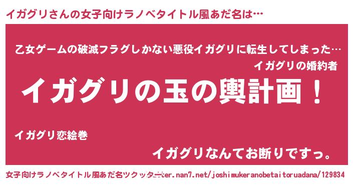 | 胡散臭い通販商品みたいなあだ名 | 『あなたにだけ特別に提供する100年もののヴィンテージワイン…その名も「イガグリ」』 |