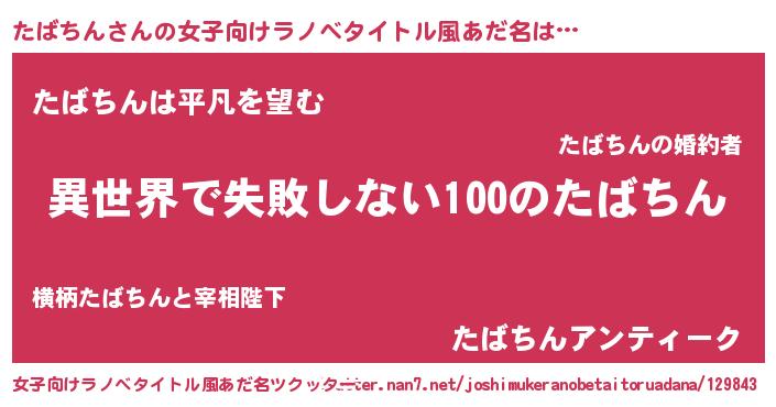 | 男性向けラノベタイトル風あだ名 | 『たばちんという概念が存在しない退屈な世界 』 |