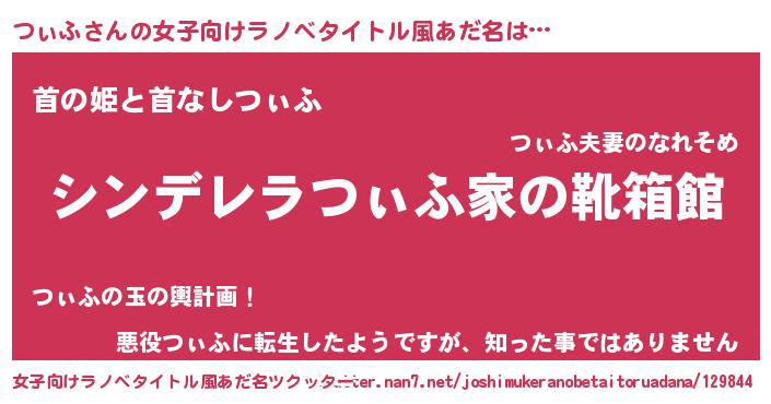 | 男性向けラノベタイトル風あだ名 | 『冴えないつぃふの育てかた』 |