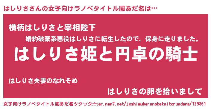| 胡散臭い通販商品みたいなあだ名 | 『モテモテ間違いなし水晶球…その名も「はしりさ」』 |