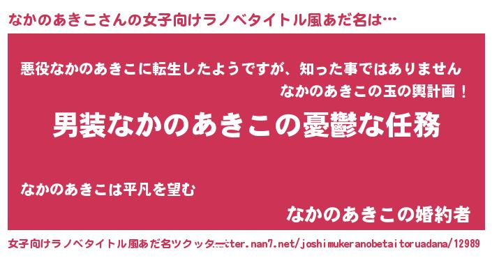 | 意味不明あだ名 | 『住所不定無職なかのあきこ(41歳)』 |
