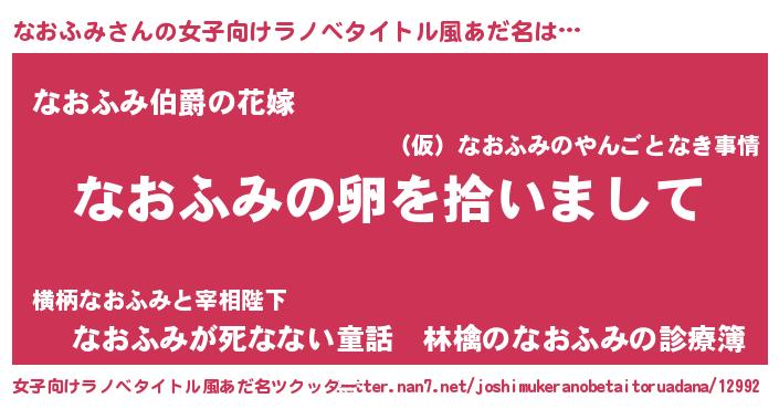 | ポケモン風あだ名 | 『ヒナオフミ』『ナオフダネ』 |