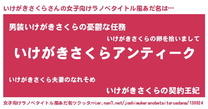 | 男性向けラノベタイトル風あだ名 | 『魔法科高校のいけがきさくら』 |