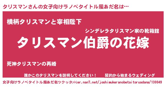 | 男性向けラノベタイトル風あだ名 | 『やはりタリスマンの青春ラブコメはまちがっている 』 |