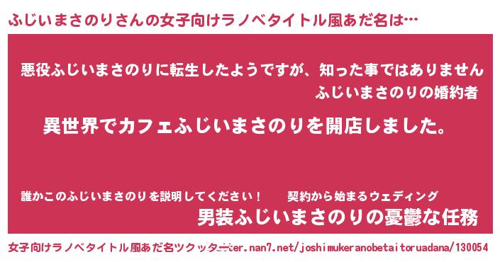 | 男性向けラノベタイトル風あだ名 | 『誰もが恐れるあのふじいまさのりが、ぼくの専属メイドになるようです。』 |