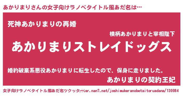 | 伝説のあだ名 | 『救世主となる占い師あかりまり』 |