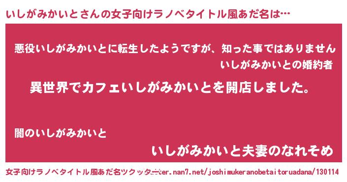 | ヘコむあだ名 | 『いしがみかいと(遠い目)』『酢こんぶ』 |