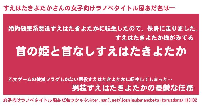 | 男性向けラノベタイトル風あだ名 | 『はたらくすえはたきよたかさま!』 |