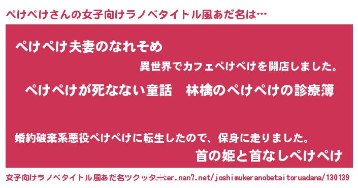 | 意味不明あだ名 | 『住所不定無職ぺけぺけ(77歳)』 |