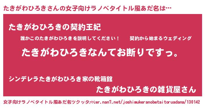 | 可愛いあだ名 | 『たきうちぇる』『たきがわひろきママ』 |