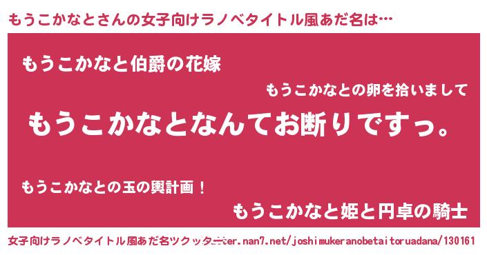 | 意味不明あだ名 | 『自称もうこかなと』 |