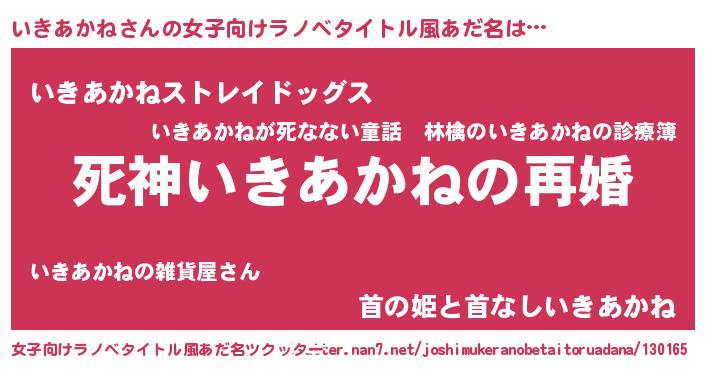 | 男性向けラノベタイトル風あだ名 | 『ノーゲーム・ノーイキアカネ』 |