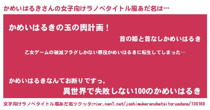 | ヘコむあだ名 | 『かめいはるき(苦笑)』『かめっぺ』 |