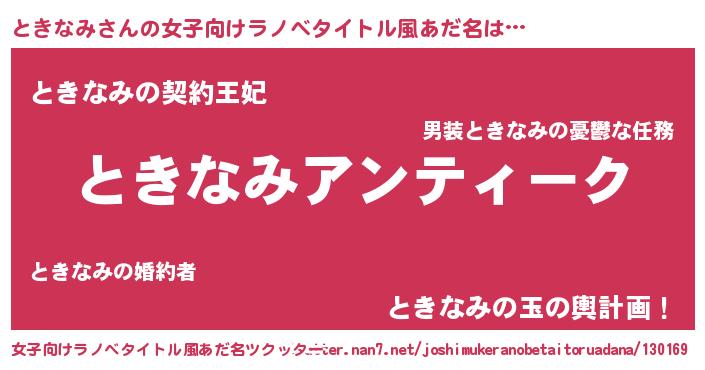 | 意味不明あだ名 | 『自称ときなみ』『永久保存ときなみ』 |