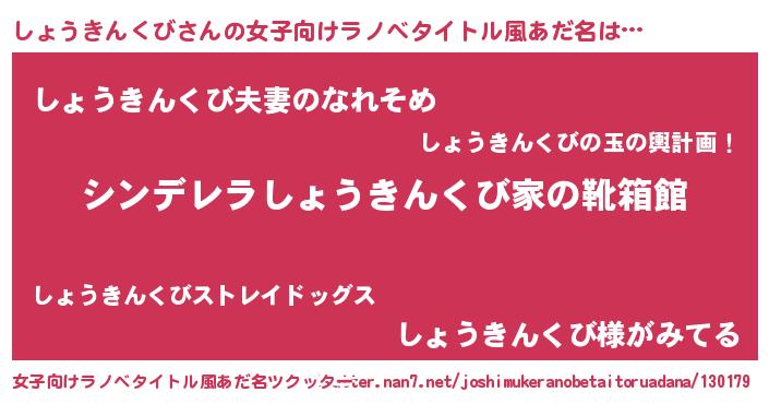 | ヘコむあだ名 | 『しょを』『しょうきんくび(苦笑)』 |