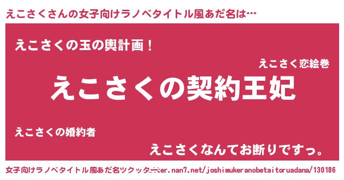 | 男性向けラノベタイトル風あだ名 | 『誰もが恐れるあのえこさくが、ぼくの専属メイドになるようです。』 |