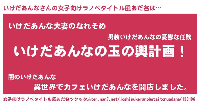 | 男性向けラノベタイトル風あだ名 | 『転生したらいけだあんなだった件』 |