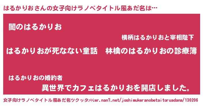 | ヘコむあだ名 | 『はるかりお(笑)』『酢こんぶ』 |