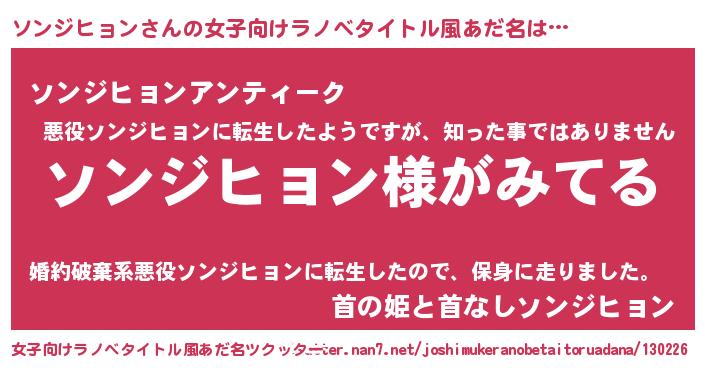 | 男性向けラノベタイトル風あだ名 | 『ソンジヒョンの嫁は女の子じゃないと思った?』 |