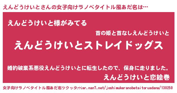 | 意味不明あだ名 | 『自称えんどうけいと』 |